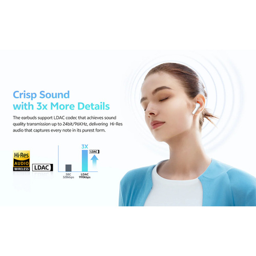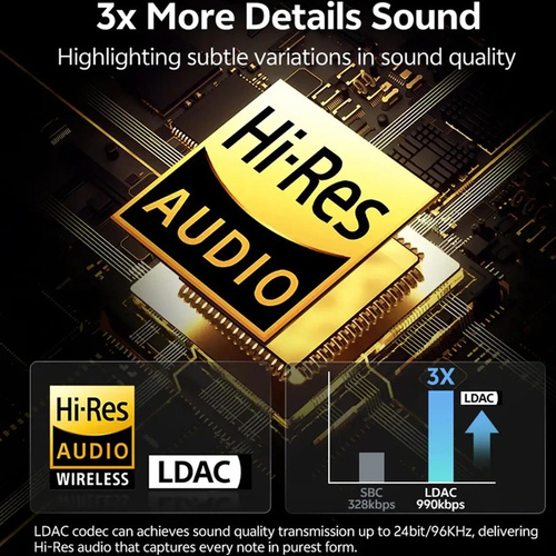 سایر مشخصاتکدک LDAC و Hi-Res Audio: این هدفون از کدک صوتی LDAC پشتیبانی می‌کند که امکان انتقال صدای با کیفیت بالا (Hi-Res) را فراهم می‌کند و جزئیات بیشتری از موسیقی را به گوش شما می‌رساند. صدای فضایی ۳۶۰ درجه (360° Spatial Sound): با استفاده از الگوریتم پیشرفته، صدای سه‌بعدی ایجاد می‌کند که تجربه شنیداری فراگیر و واقعی‌تری را در هنگام تماشای فیلم یا بازی فراهم می‌کند. درایور دینامیک ۱۳ میلی‌متری: این درایور با دیافراگم بیو-فایبر، صدایی متعادل با بیس عمیق و تریبل (صداهای بالا) شفاف ارائه می‌دهد.