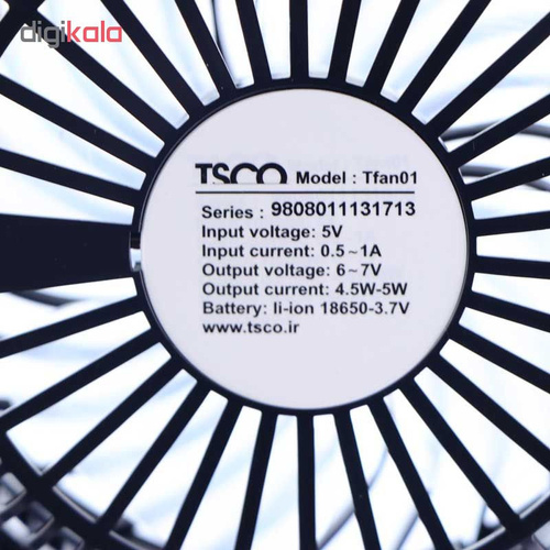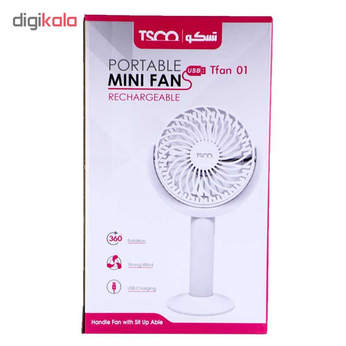 پنکه رومیزی تسکو مدل TFan 01 از جمله ابزارهایی است که به شما کمک میکند تا بتوانید فضای مطبوعی در اتاق یا محل کارتان برای خود بهوجود بیاورید. ابعاداین پنکه درحدود 20.3x13.5x28 سانتیمتر بوده و وزن آن 177 گرم است. این پنکه دارای قابلیت تنظیم ارتفاع بوده و میتوانید به دلخواه آن را تنظیم کنید و در مکانهای مختلف اتاقتان قرار دهید. این پنکه چعار پره بوده و جنس پرههای پنکه از پلاستیک است. این پنکه دارای باتری بوده و ظرفیت باتری آن 1200 میلی آمپر ساعت است. مدت زمان شارژ باتری 4 ساعت خواهد بود و طول عمر باتری 1.5 ساعت است. فن این پنکه دارای دو حالت سرعت است. سرعت فن 4000RPM خواهد بود. همچنین پنکه رومیزی تسکو مدل TFan 01 ولتاژ ورودی DC 5V دارد.