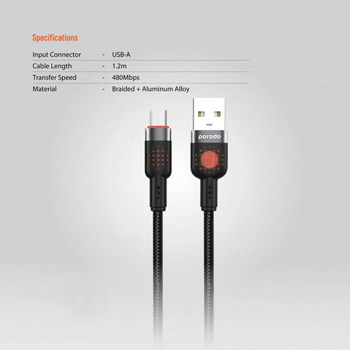 کابل تبدیل USB-A به MicroUsb پرودو طول 1.2 متر