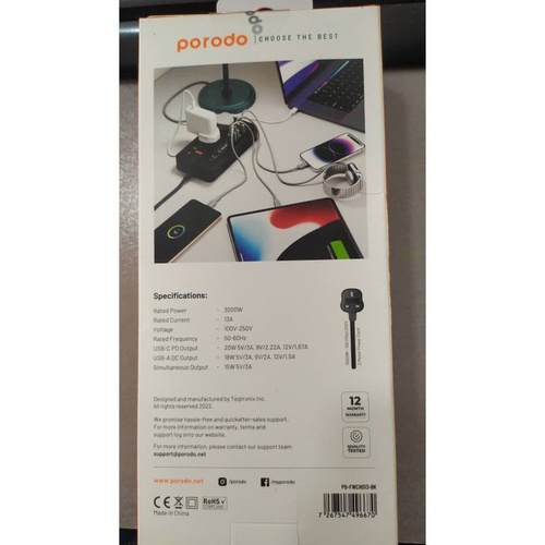 چند راهی برق پرودو pd-fwch013 دارای چندین قابلیت کاربردی می باشد این محضول دارای سه خروجی یونیورسال برق شهری (قابلیت اتصال انواع سرسوکتهای EU-AU-us-uk ) و سه خروجی یو اس بی استاندارد و یک شارژ سوپر فست QC3.0 و یک خروجی pd برای شارژ مک بوک و لپ تاپهایی که سازگار با شارژ پی دی باشند . همچنین این محصول دارای محافظ داخلی برق محافظ ولتاژ و بدنه ضد حریق می باشد . طول کابل ای محصول 2 متر میباشد .